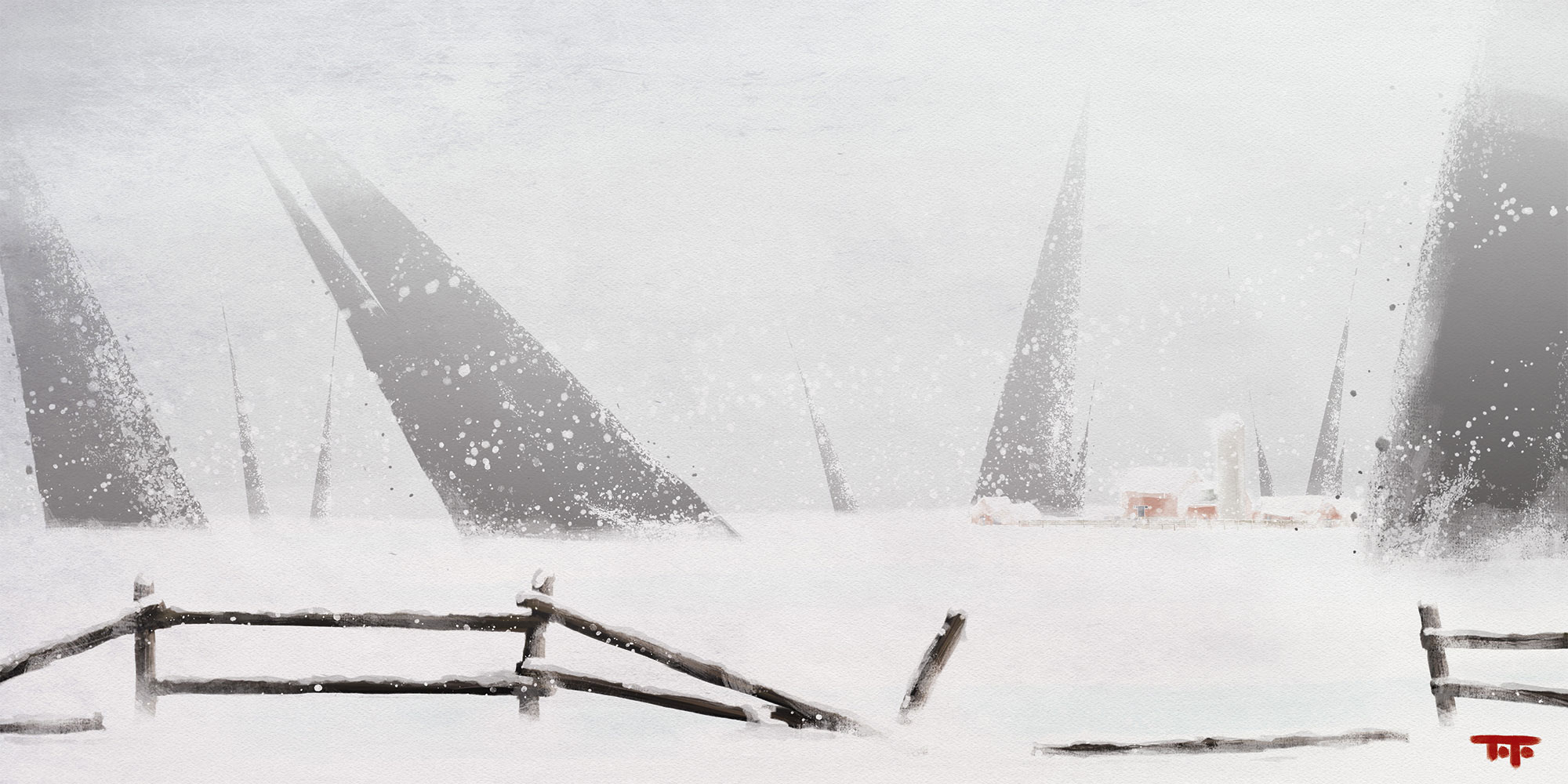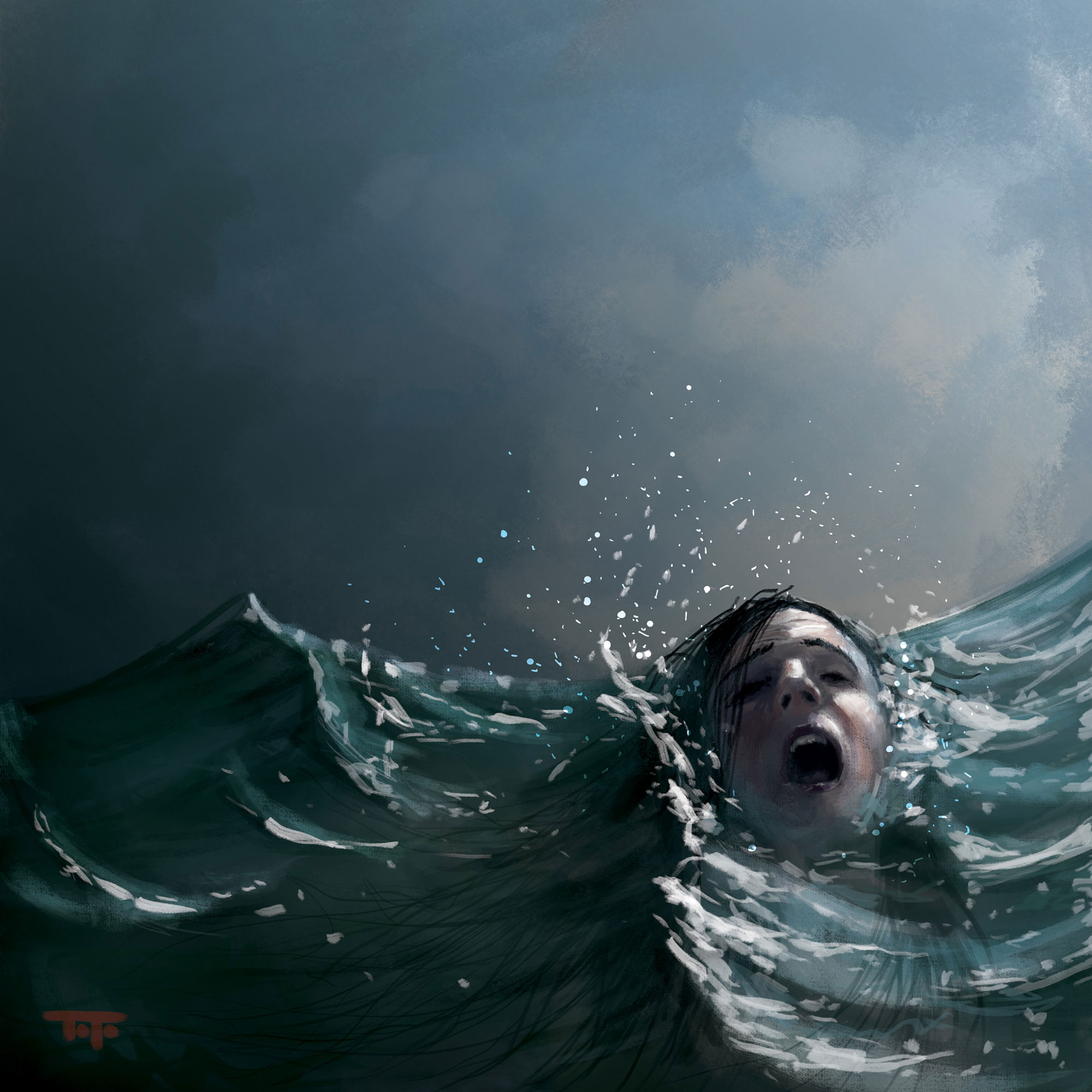 Digital painting created by hand in Photoshop with custom brushes, and a wacom tablet. 18x10" in size.